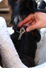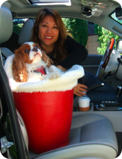 secures & supports small dogs traveling in the car.